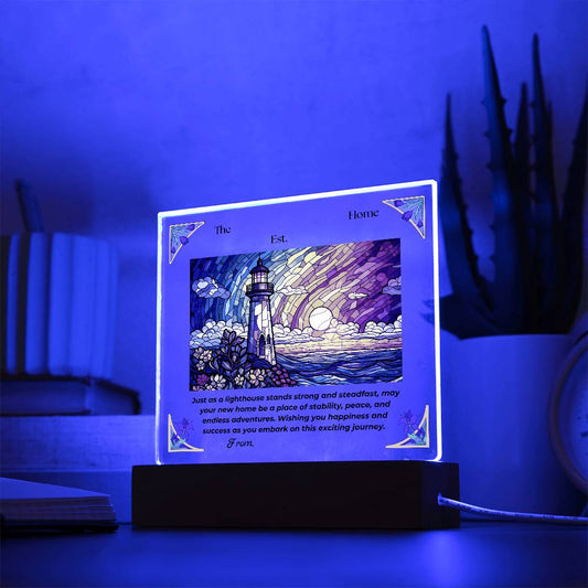 Customized Rectangle Lighthouse Acrylic Plaque Housewarming Gift