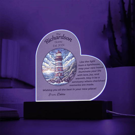 Customized Heart Lighthouse Acrylic Plaque Housewarming Gift